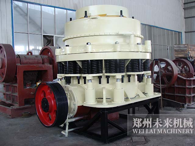 彈簧圓錐破碎機工作時(shí),電機通過(guò)液力偶合器、小圓錐齒輪驅動(dòng)偏心套底部的大圓錐齒輪,使偏心套旋轉,致使錐體作旋擺動(dòng)而破碎物料。破碎機的主軸是不動(dòng)的,只是支撣球面瓦,承受破碎力。由于破碎機主軸不動(dòng)而偏心套傳遞破碎力,故該結構可承受較大破碎力,對細碎和超細破碎非常適應,因為超細破碎的破碎力是非常大的。預計其產(chǎn)品粒度(對于超細碎型襯板)開(kāi)路時(shí)可達50-80%(視物料性質(zhì)而有所差異)